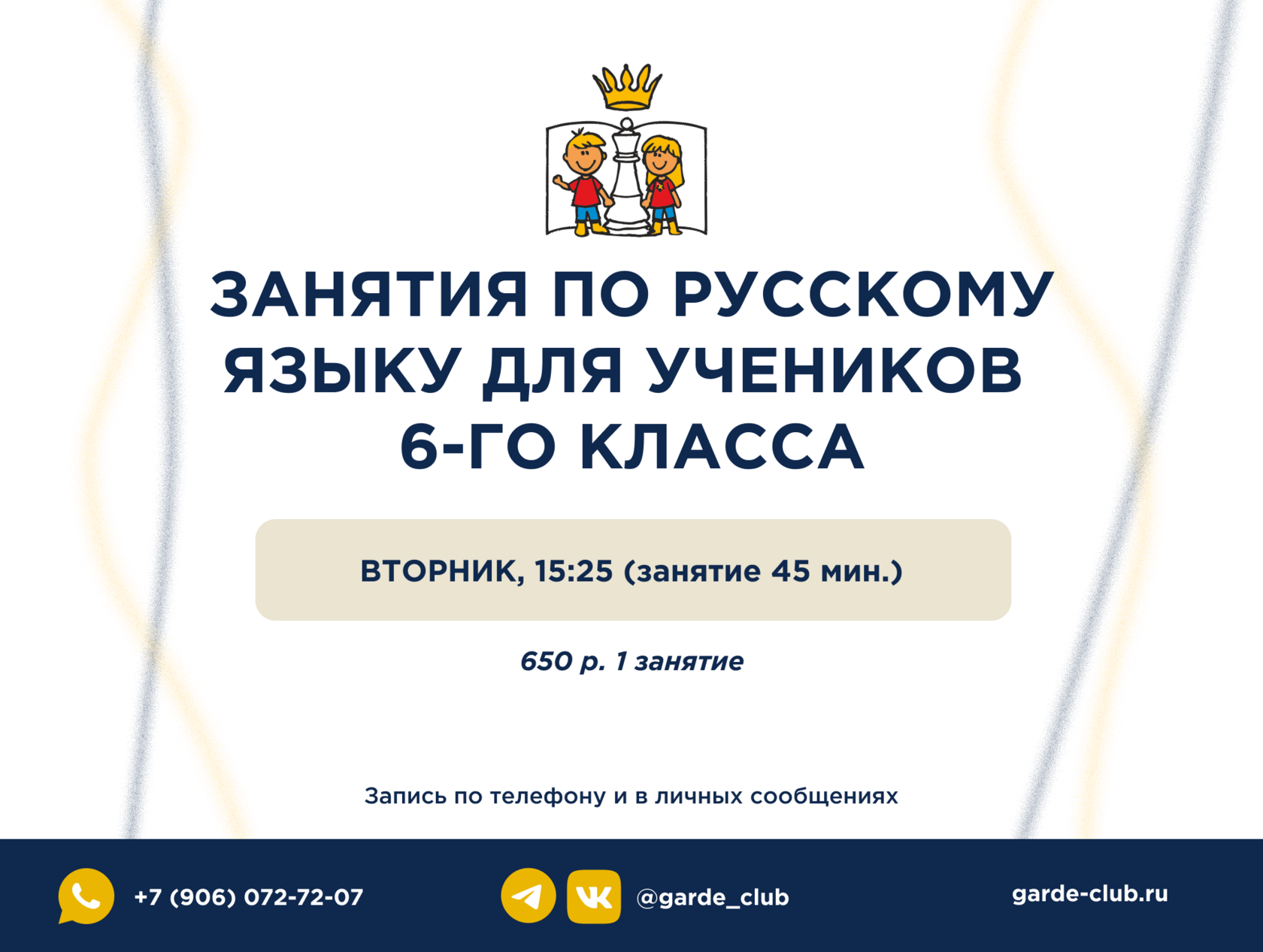 Уважаемые родители! Рады вам сообщить, что в нашем клубе появились занятия по русскому языку для учеников 6-х классов.